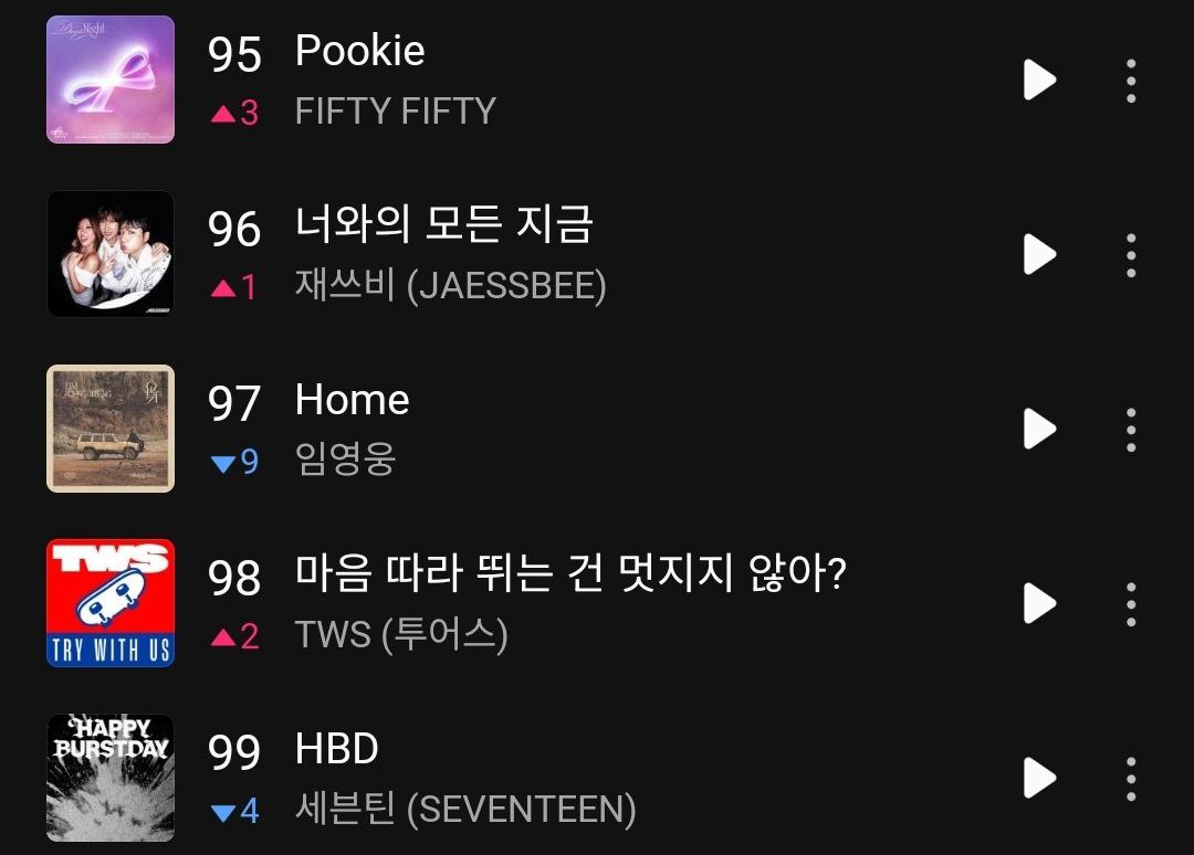 '푸키(Pookie)'는 상승세가 계속 이어지고 있어 오늘 24일은 멜론 톱100 순위가 더욱 높아질 것으로 기대합니다.