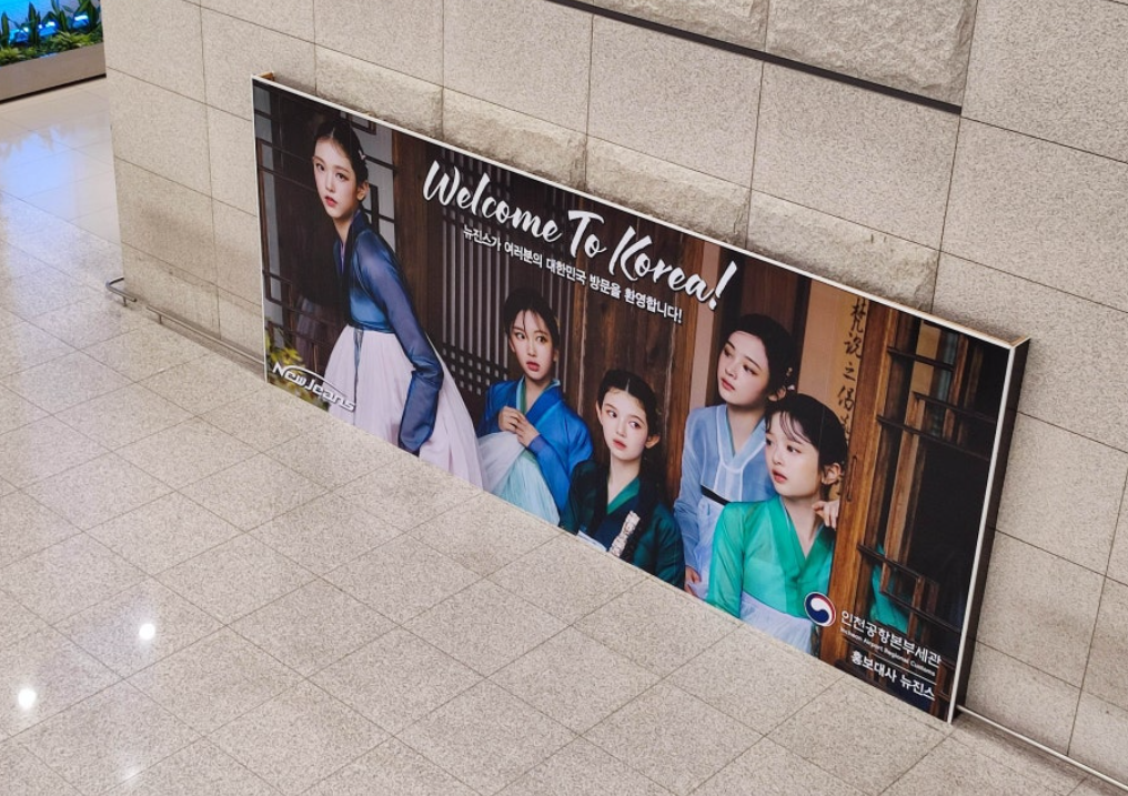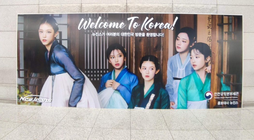 방한하는 외국인들이 인천국제공항으로 입국할 때 입국장에서 가장 잘 보이는 위치에 뉴진스 배너가 걸려있다는 점을 강조해 뉴진스와 소속사 하이브(HYBE) 어도어(ADOR)를 설득한 것이었습니다.