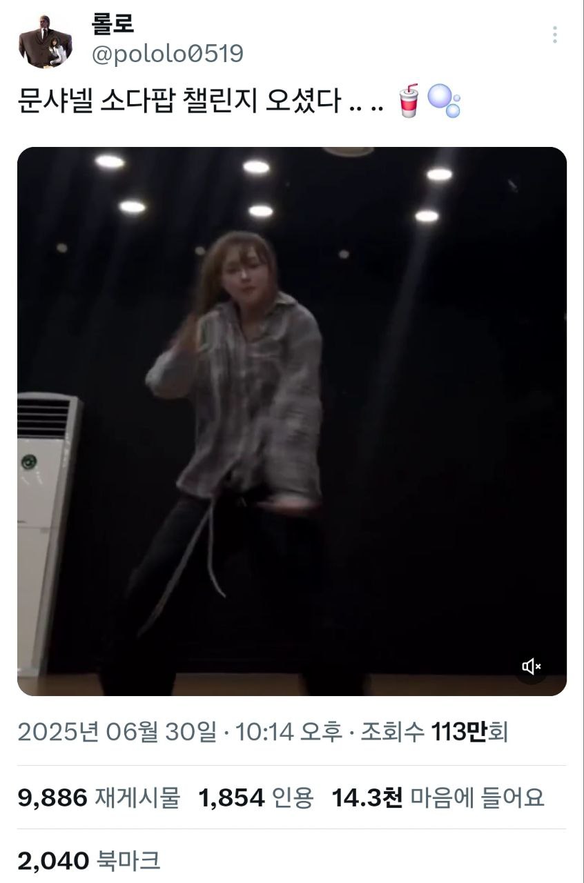 문샤넬의 '소다팝(Soda Pop)' 챌린지는 SNS X에서 하루 만에 100만뷰를 넘었으며 인스타그램, 틱톡 등 SNS를 합치면 수백만뷰에 달하고 있습니다.