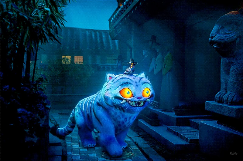 호랑이 '더피'는 한국 전통 민화 '작호도'에서 영감을 받아 만든 캐릭터인데 보이그룹 ‘사자보이즈’ 리더 진우의 반려동물이자 진우와 걸그룹 ‘헌트릭스’ 멤버 루미 사이를 오가는 전령 역할을 하는 존재로, 큰 눈과 올라간 입꼬리, 통통하고 짧은 다리 등 귀여운 외형은 물론 강아지 같은 살가운 행동으로 시청자의 마음을 사로잡았습니다.