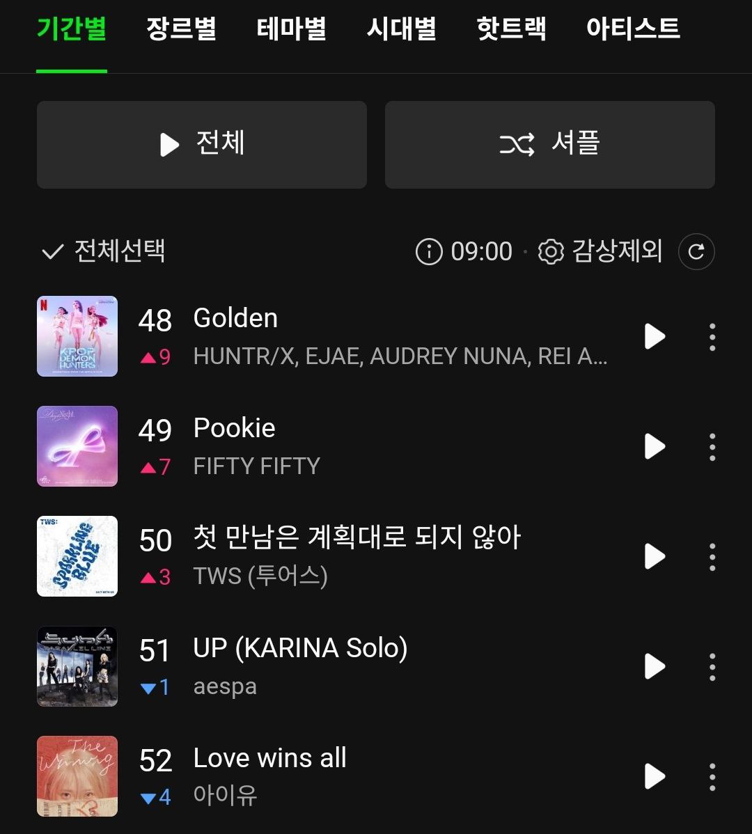 피프티피프티 노래와 K팝 데몬 헌터스 노래가 음원사이트에서 앞서거나 뒷서거니 오르는 순위를 보는 재미도 있습니다.