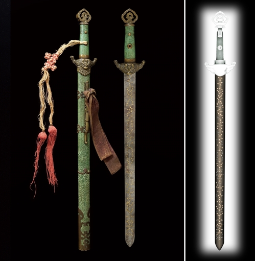 특히 날카로이 벼려진 사인검의 검날에는 28수 별자리가 새겨져 있어요. 28수 별자리는 하늘을 28개의 구역으로 나눈 동양의 전통 별자리예요. 동·서·남·북을 고루 아우르기 때문에, 하늘 전체를 상징하는 별자리로 여겨지지요. 별자리가 반짝이는 루미의 검에는 이런 전통이 고스란히 담겨 있어요.