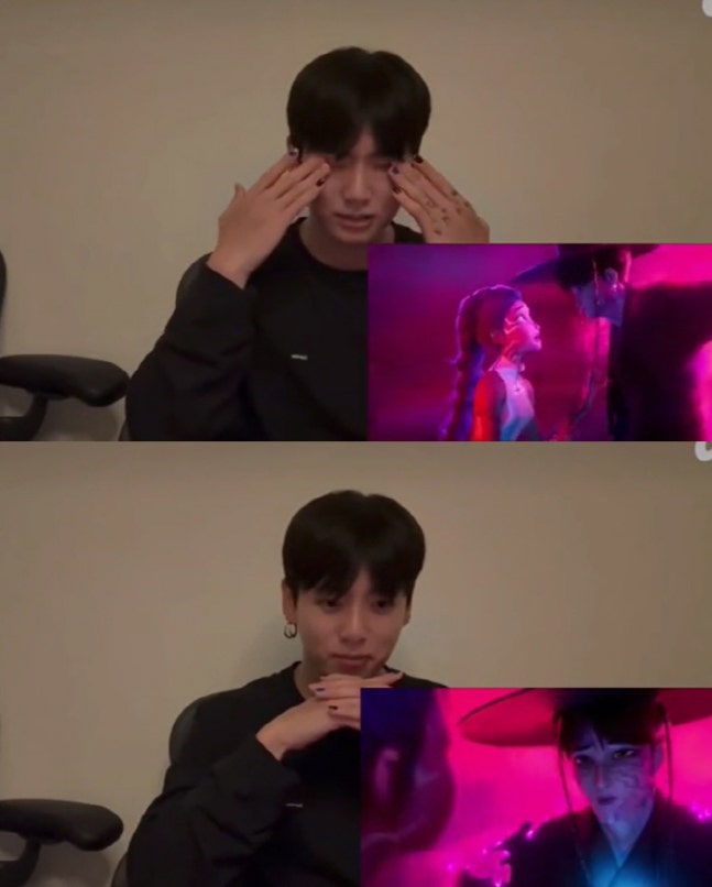 그러던 중 정국은 '케데헌' 영화에 과몰입하여 마지막 엔딩에서 결국 울컥하는 모습을 수백만 팬들에게 보여줬습니다.