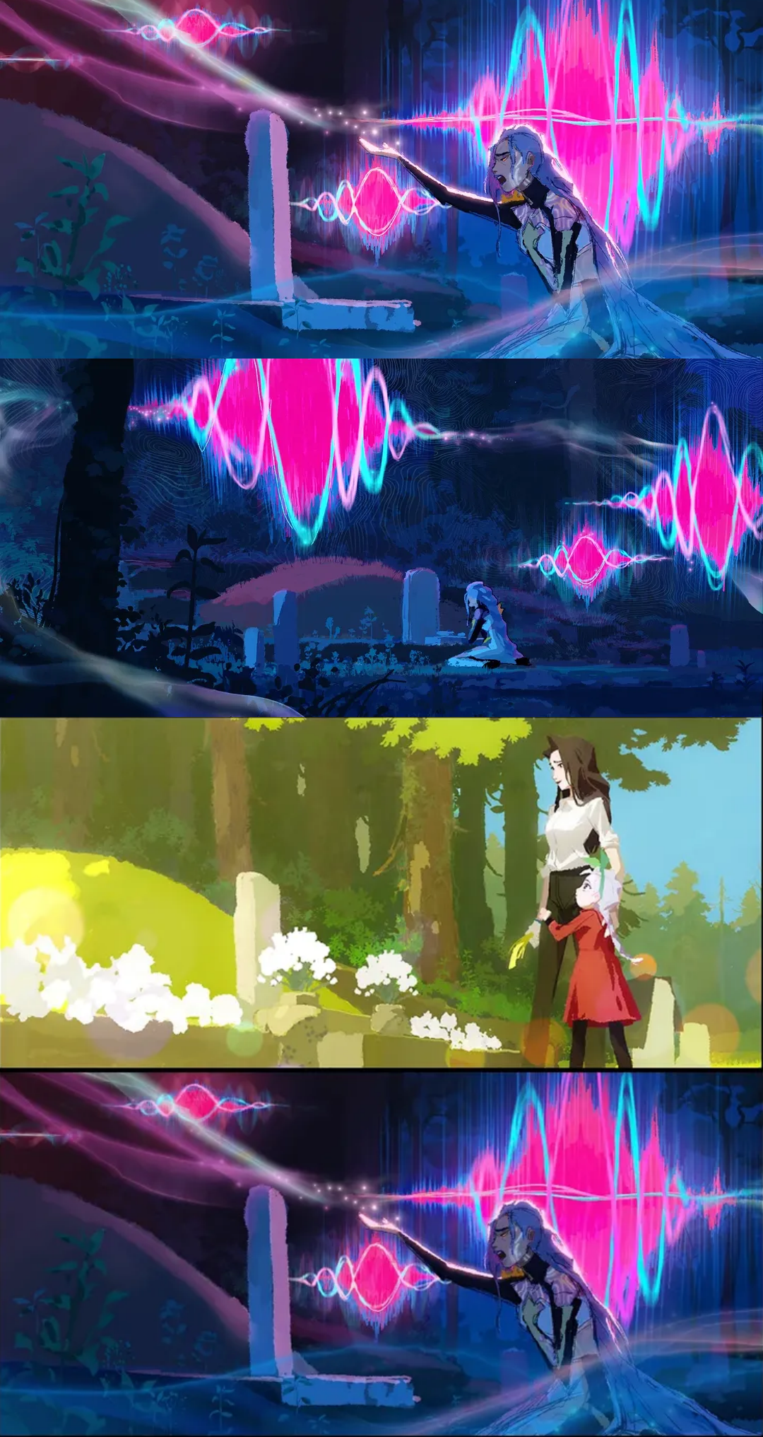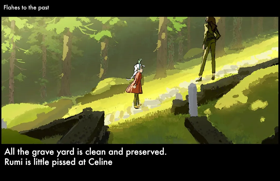 셀린은 루미를 보며 웃고 다시 묘지 쪽으로 몸을 돌린다