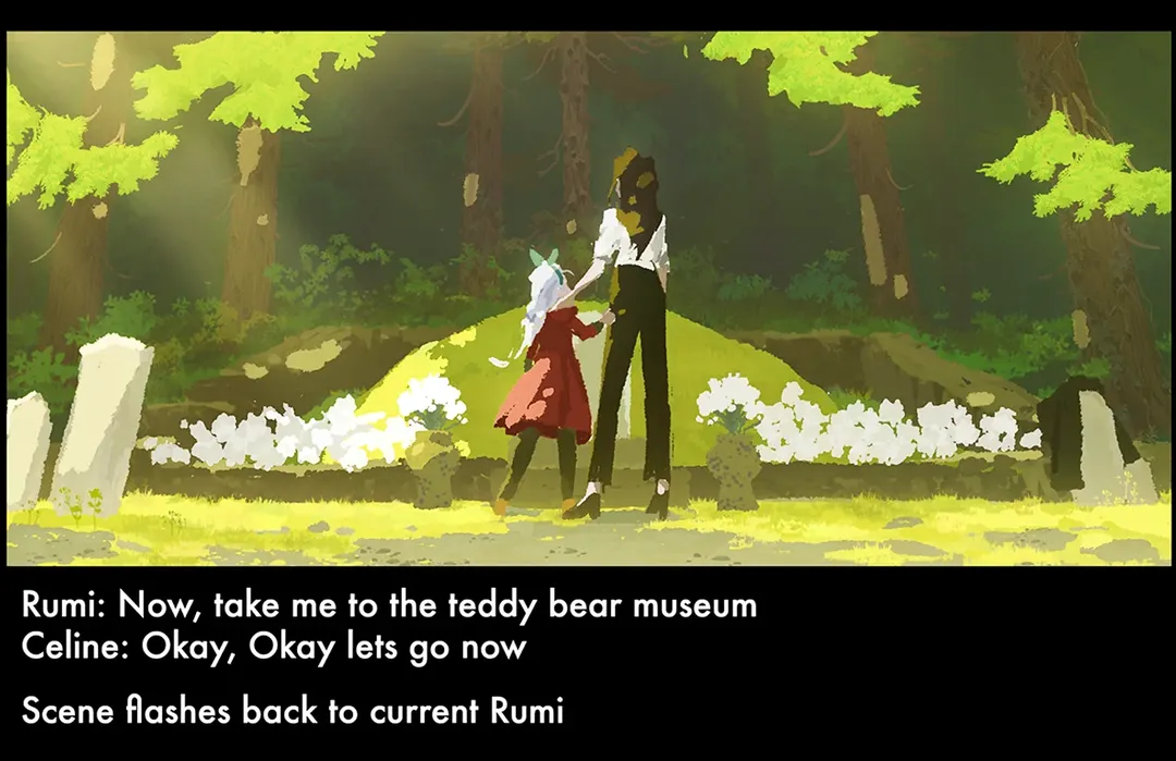 루미 "셀린! 이 묘지 청소 대체 언제까지 할 거야! 곰 인형 박물관에 데려간다고 했잖아. 대체 누구 묘지인데?"