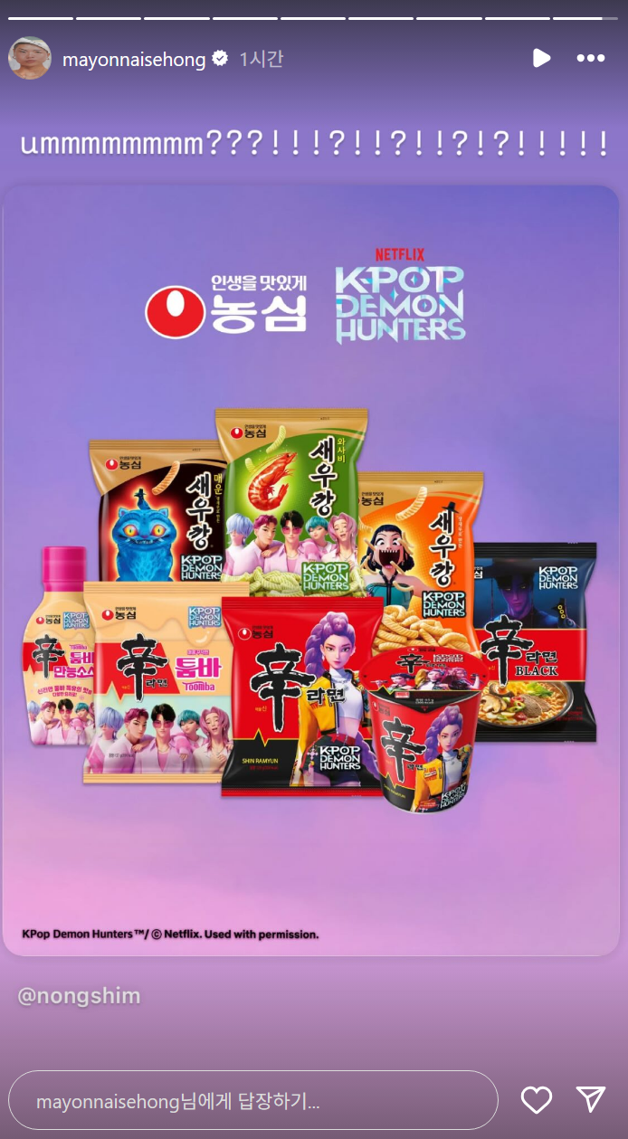 결국 농심은 'K팝 데몬 헌터스'와 콜라보 상품을 공개했습니다.