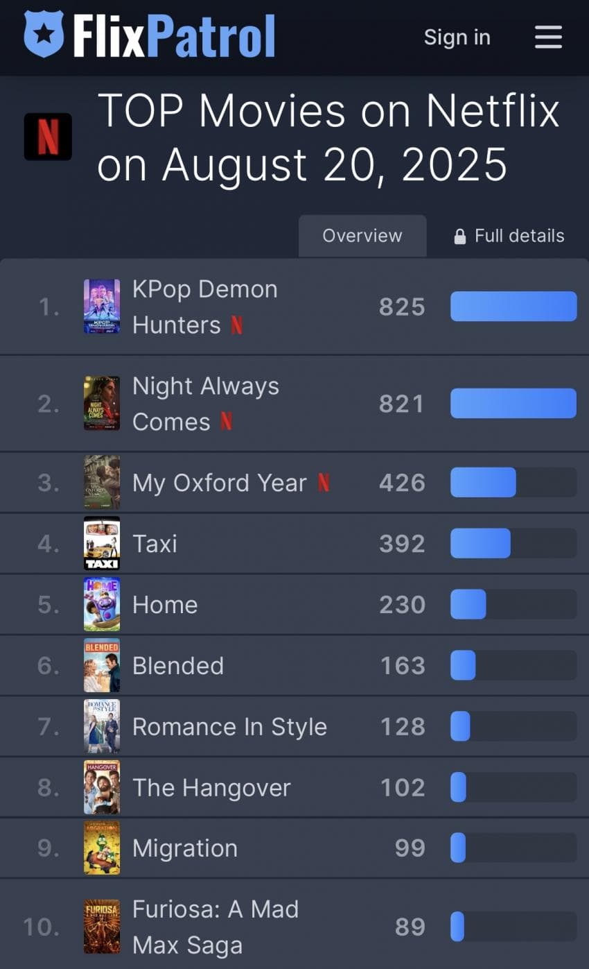 '케데헌' 영화는 넷플릭스에서 3일 만에 신작 영화 '나이트 올웨이즈 컴스(Night Always Comes)'를 제치고 다시 1위를 탈환했습니다.