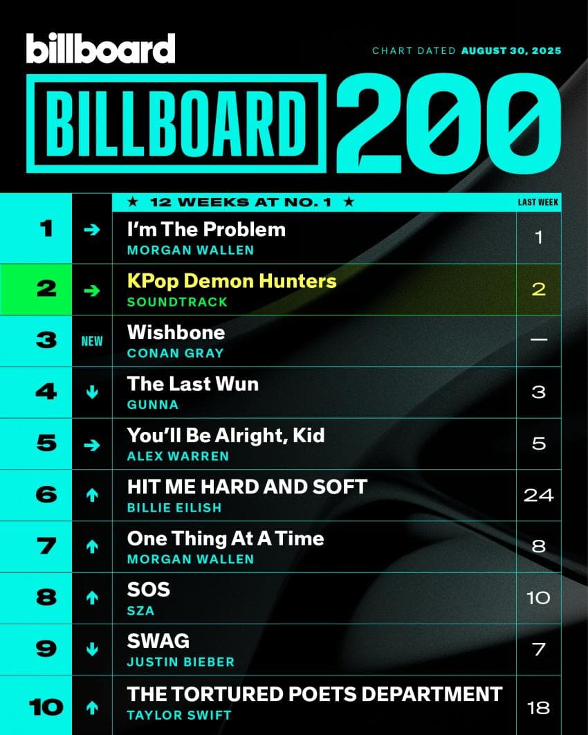 아울러 미국에서 발매된 앨범 순위를 나타내는 '빌보드 200' 차트에서는 '케데헌'이 2위를 유지하고 있습니다.