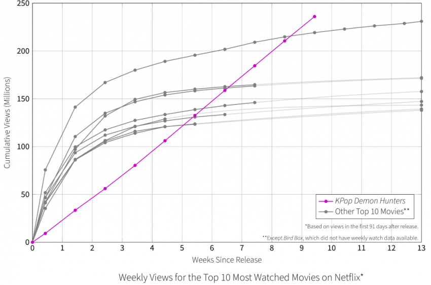 'K팝 데몬 헌터스'가 넷플릭스 역사상 가장 많이 본 영화가 되면서 기록적인 수치에 대한 심층 분석이 이루어졌습니다.