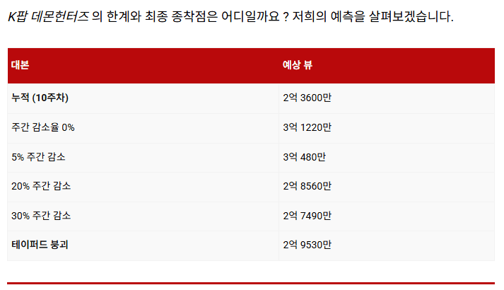 넷플릭스는 27일 오늘 새벽 "그들의 1위 시대, 2억 3600만뷰를 기록한 케이팝 데몬 헌터스는 공식적으로 역대 가장 인기있는 넷플릭스 영화"라고 선언했습니다.