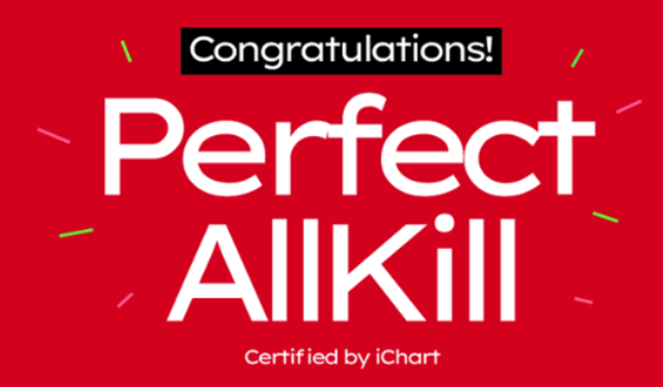 쉽게 말해서 국내 모든 음원 사이트 실시간 및 일간 차트에서 모두 1위를 해야 '퍼펙트 올 킬'인데 이것을 무려 1000회를 돌파해 버린 것입니다.