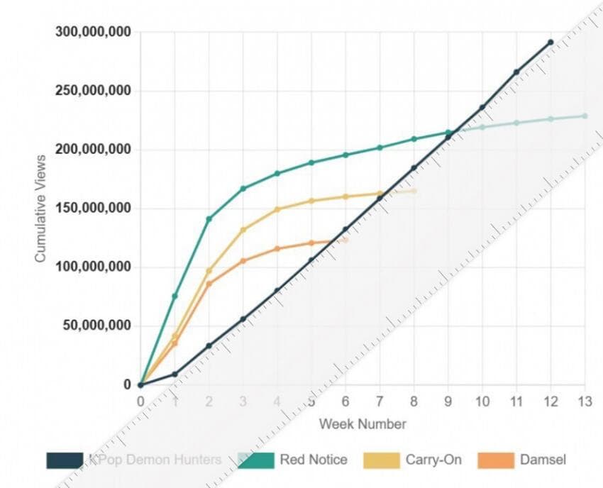 사실상 넷플릭스 사상 처음으로 시청 횟수 3억회를 돌파하는 최초의 영화가 바로 '케데헌'이라는 것입니다.