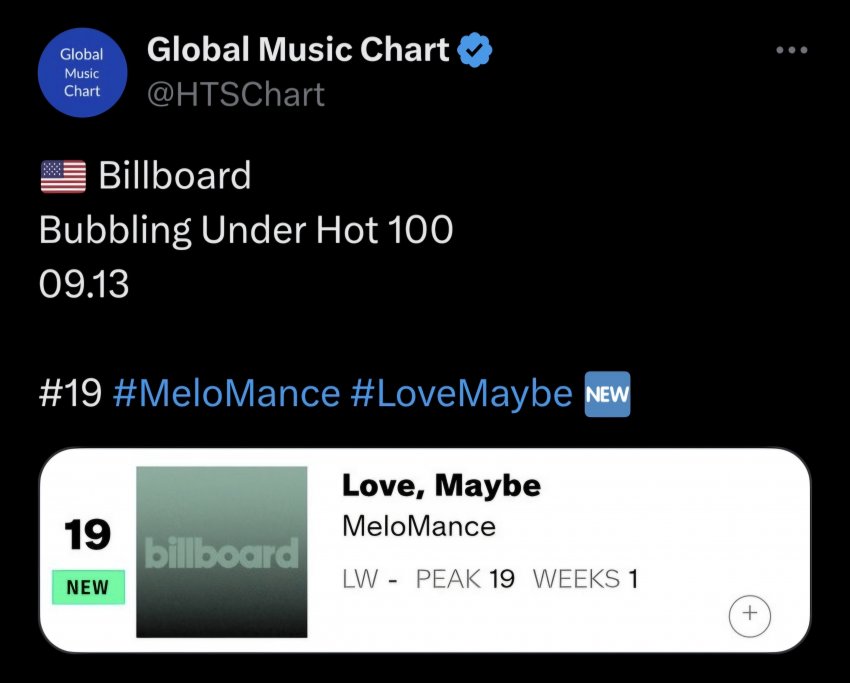 '케데헌'에 삽입된 멜로망스(MeloMance) 노래 '사랑인가봐(Love, Maybe)'가 빌보드 버블링차트 19위에 진입해, 곧 빌보드 핫100 차트 진입을 예고했습니다.