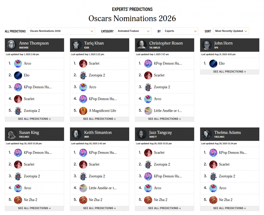 다음은 아카데미상 예측입니다.