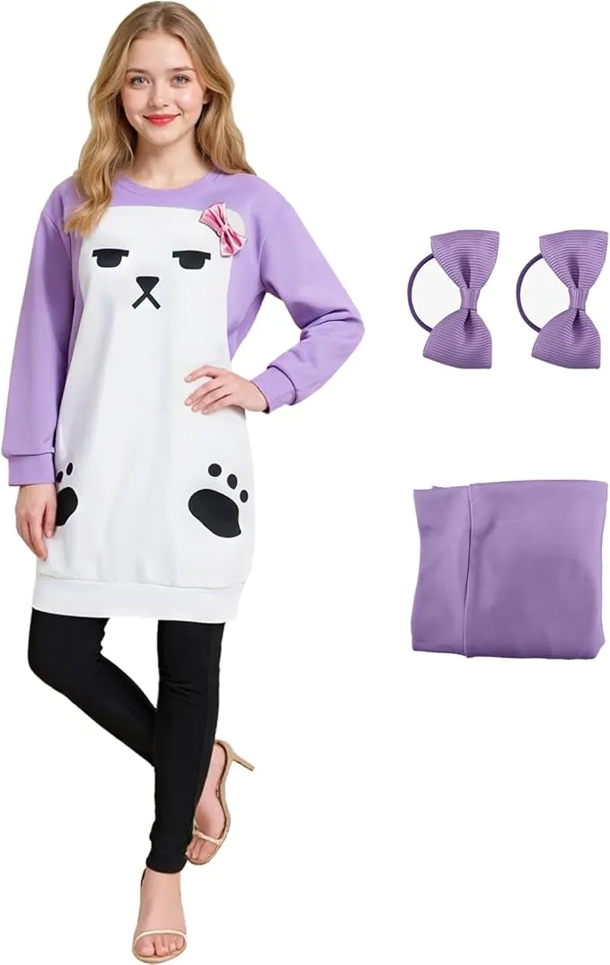 미라의 타임 오프 룩 세트에는 매우 귀여운 풀오버와 보라색 리본이 함께 제공되는데 가발만 있으면 바로 사용할 수 있다는 것.