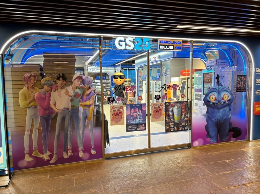 GS25 편의점에서 사자보이즈 대형 포스터 등을 활용해 '추석' 명절 프로모션 마케팅에 돌입했습니다.