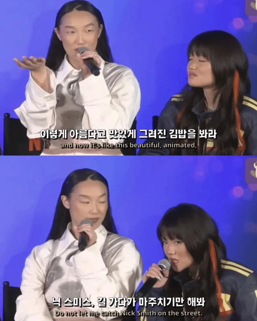오드리 누나(Audrey Nuna)가 매기 강 감독, 크리스 애펠한스 감독, 이재(EJAE), 레이 아미(Rei Ami) 등 '케데헌' 주요 인물들이 참석한 행사에서 '닉 스미스'를 공개 저격했습니다.