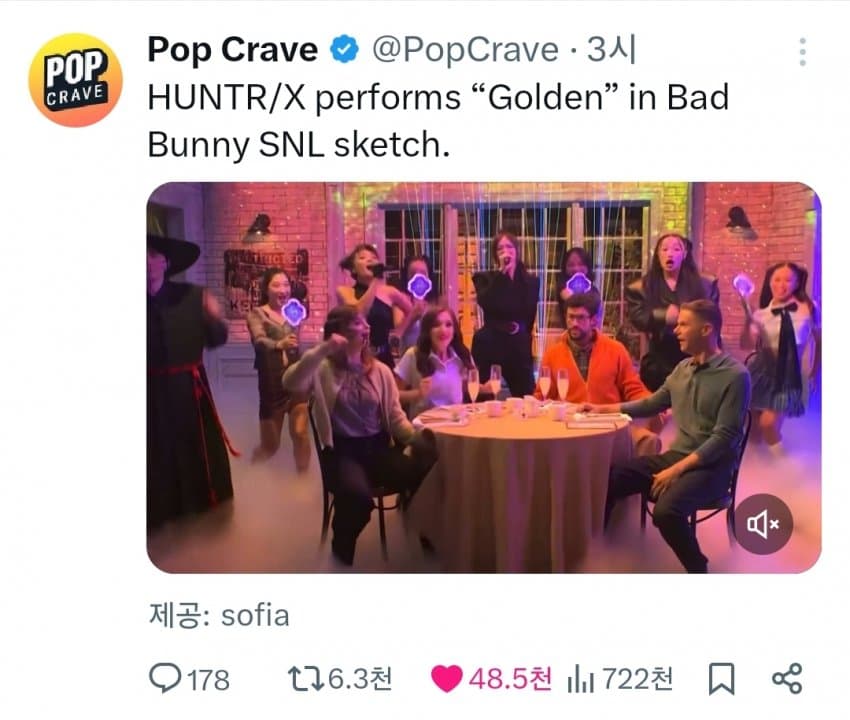 이들이 출연한 SNL 시즌 51 에피소드 1의 스케치는 라틴계 팝스타 배드 버니가 호스트로 나와 '케데헌'에 시종일관 집착하는 모습을 익살스럽게 그렸습니다.