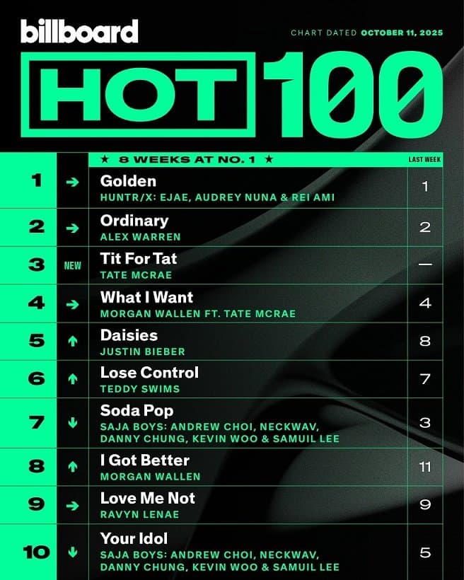 빌보드는 오늘 7일 새벽 "헌트릭스(HUNTR/X)의 '골든(Golden)'은 빌보드 핫100에서 8주째 1위를 차지했다"며 "'케데헌' 스매시는 그 행진을 연장했다"고 발표했습니다.