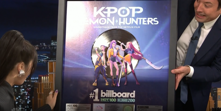 이에 NBC '더 투나잇 쇼', 일명 '지미 팰런쇼'에서는 이재(EJAE), 오드리 누나(Audrey Nuna), 레이 아미(Rei Ami) 3인에게 플래티넘 인증패를 선물했습니다.