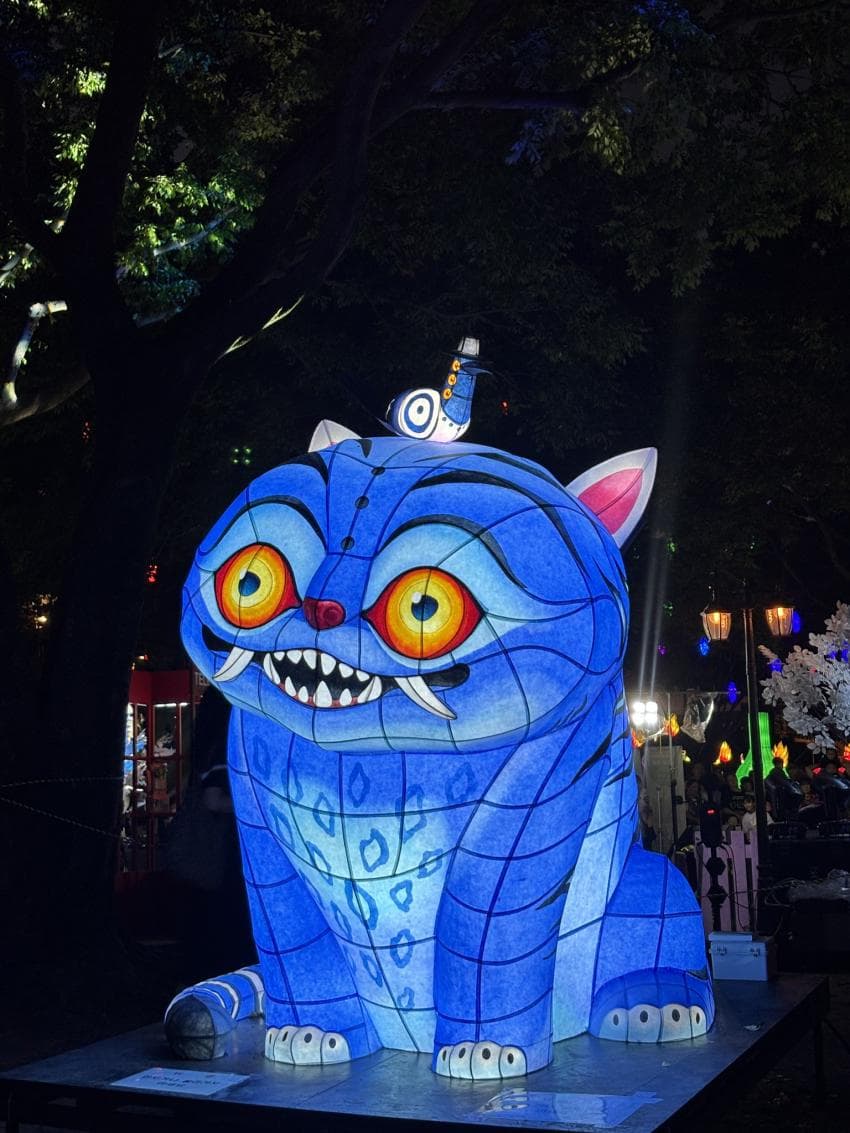 진주남강유등축제에서 호랑이 '더피' 및 까치 '서씨'가 등장했습니다.
