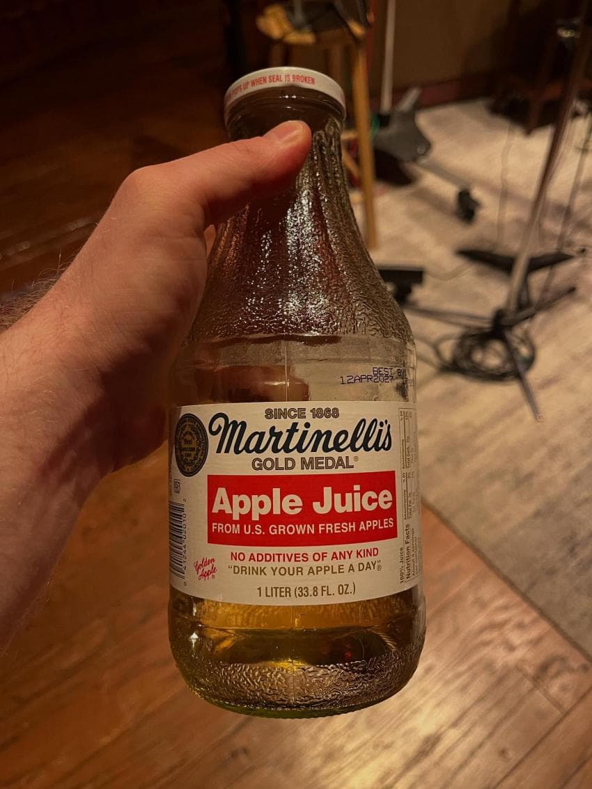 애플쥬스 병에 골드메달이라고 적힌 것이 '골든' 노래와 오버랩됩니다.