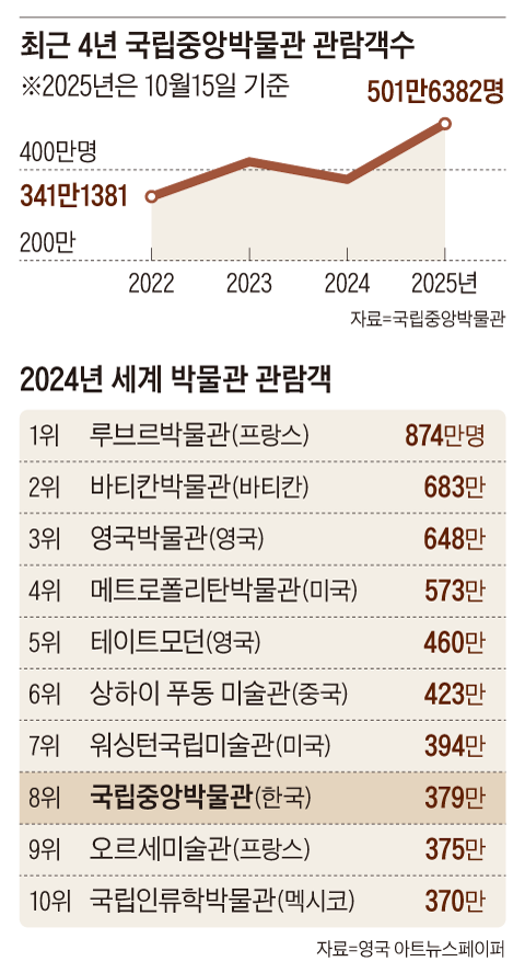 관람객 수 기준 전 세계 박물관· 미술관 상위 5위 안에 드는 기록입니다.