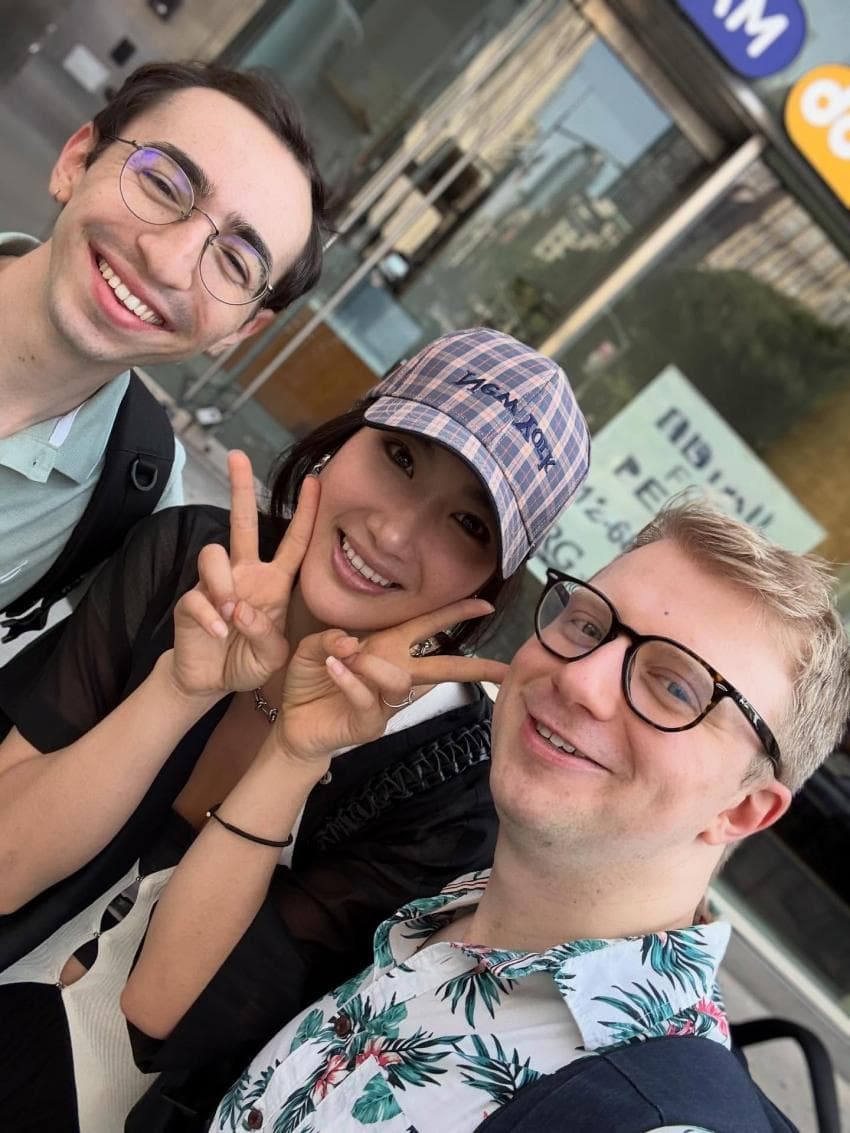 그리고 트리오가 "팬들을 위하여!"라고 외치는 장면입니다.