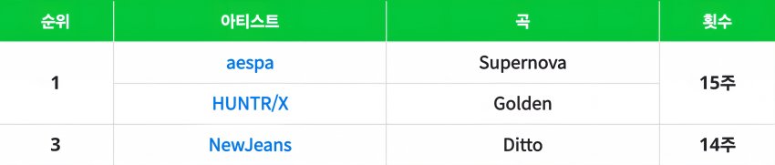 한편, 세계 최대 음원 플랫폼 스포티파이 글로벌 데일리 차트에서는 헌트릭스 '골든'이 3주 만에 다시 1위를 탈환했습니다.