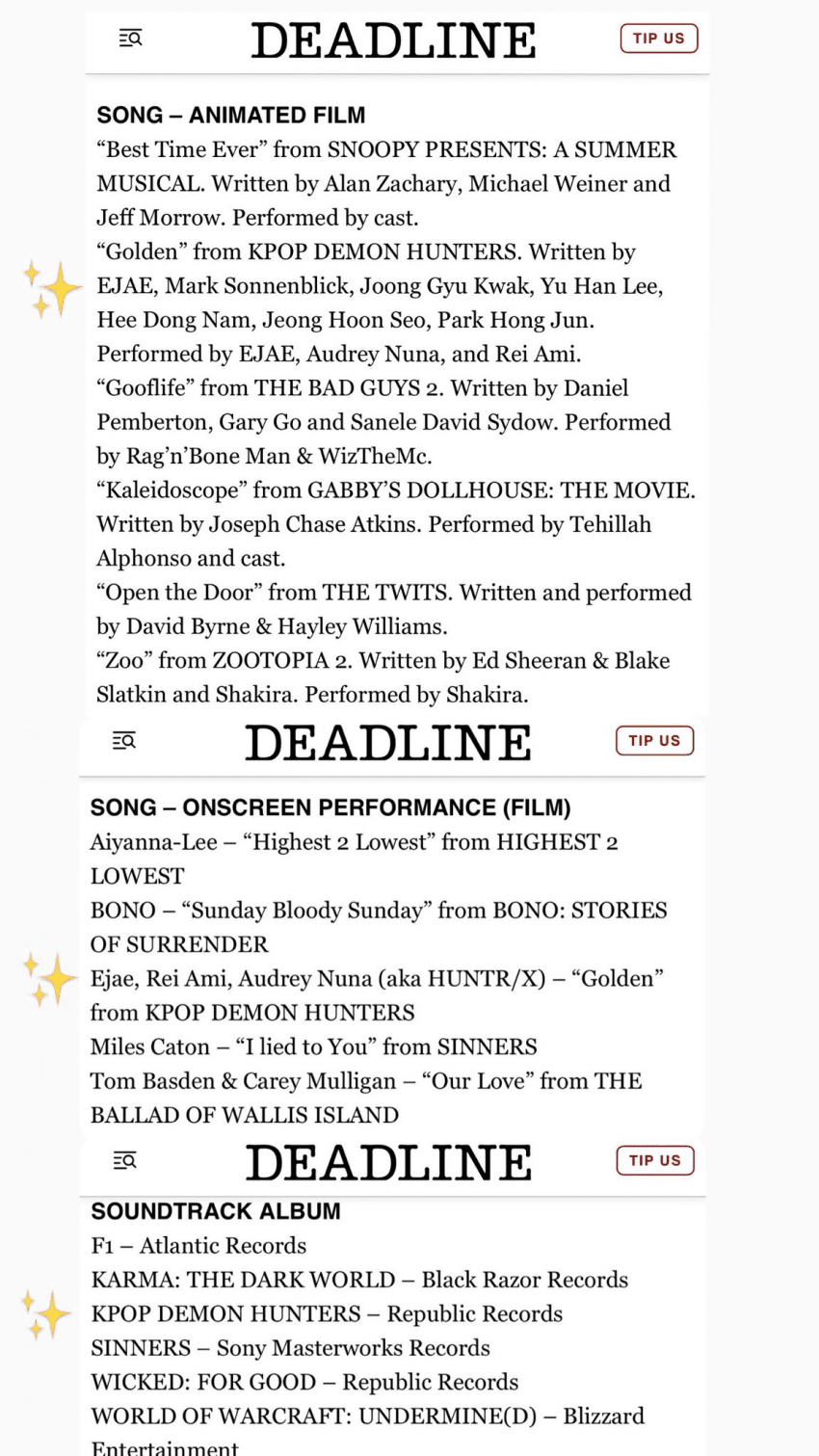 또한 "이재(EJAE)는 수요일 밤 UCLA의 로이스 홀(Royce Hall)에서 열리는 데드라인 할리우드(Deadline Hollywood)의 '사운드 앤 스크린(Sound and Screen) 콘서트'에 참석할 예정"이라고 전했습니다.