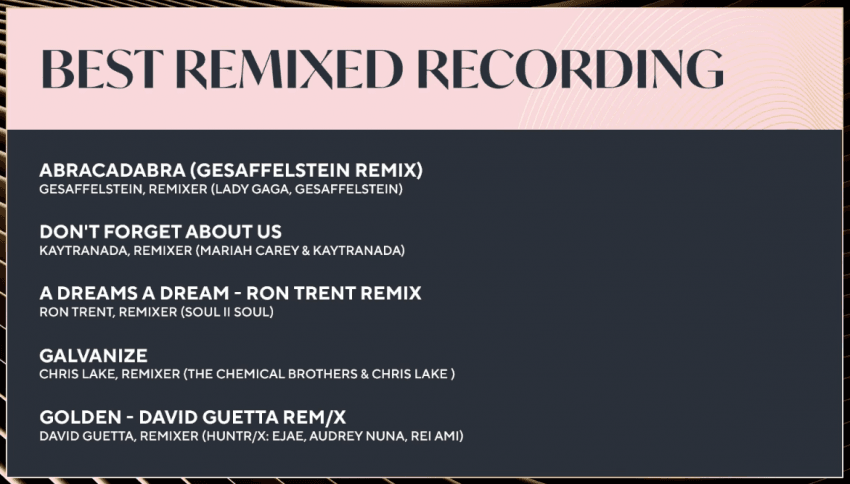 '골든'은 '송 오브 더 이어'와 함께 '베스트 팝 듀오/ 그룹 퍼포먼스', '베스트 송 리튼 포 비주얼 미디어', 데이비드 게타 리믹스로 '베스트 리믹스드 레코딩' 후보로 지명됐습니다.