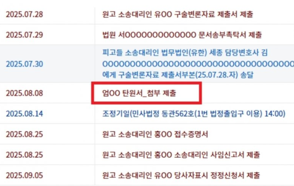 소송 진행 상황에 따르면 지난 8월 엄모 씨가 탄원서를 제출했습니다.