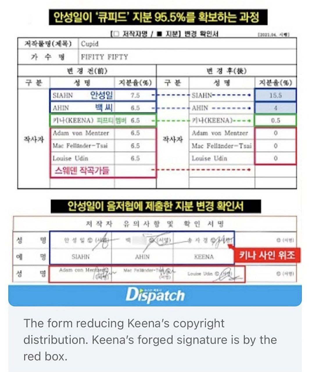 심지어 안성일은 멤버 키나의 저작권 지분 6.5%를 키나 몰래 0.5%로 대폭 낮춰 강탈해 비난을 받고 있습니다.
