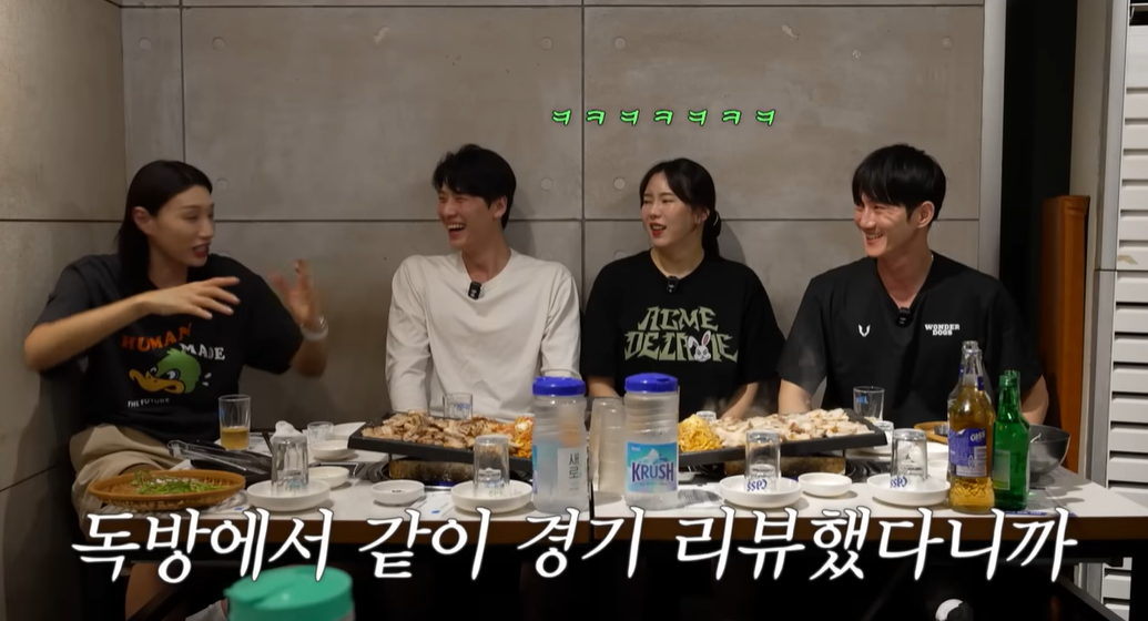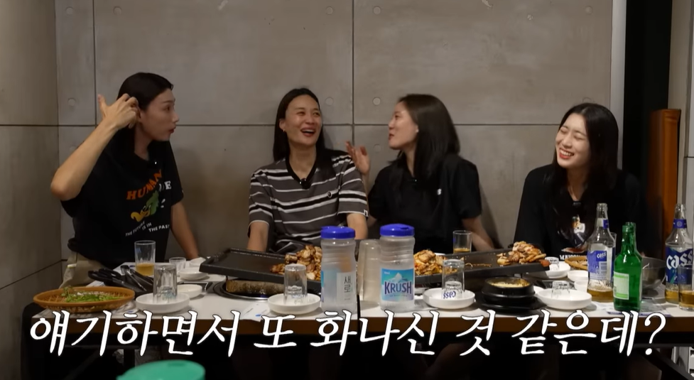 김연경 감독과 원더독스는 2024~2025 시즌 프로 통합 준우승팀인 흥국생명 레드스파크스와의 마지막 경기를 이긴 후 회식을 했던 것입니다.