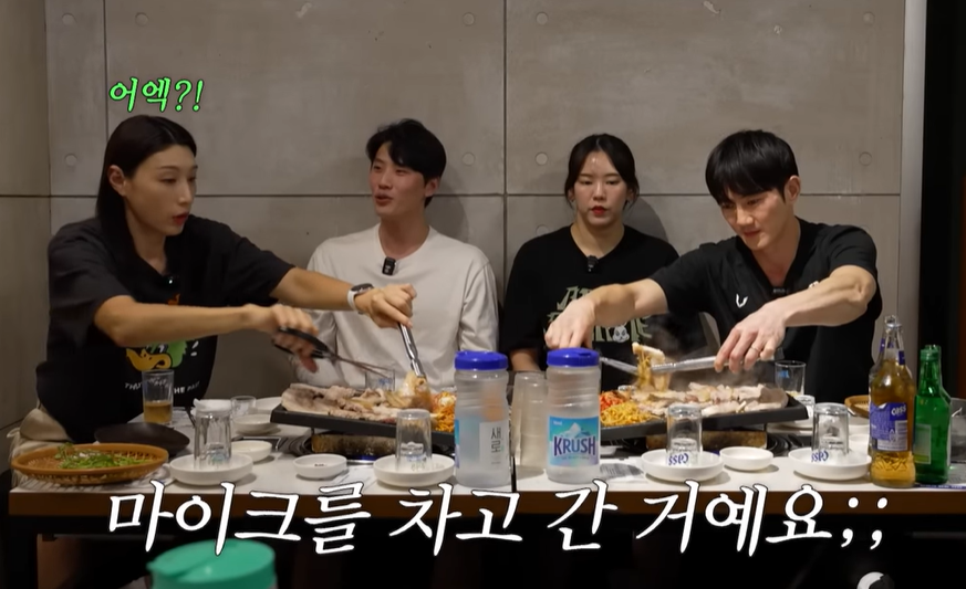 식빵언니 김연경 유튜브에는 '그동안 너무 고생하셨습니다♡ 그리고 이제는 말할 수 있다! 마지막 촬영 후 다같이 회식하며 나누는 그동안 못했던 이야기들'이라는 제목으로 회식 모습 영상이 공개됐습니다.