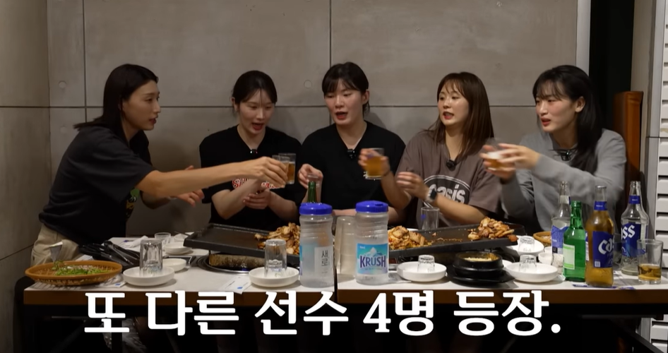 다음으로 김현정, 문명화, 최수빈, 윤영인 4명이 김연경과 함께 자리했습니다.