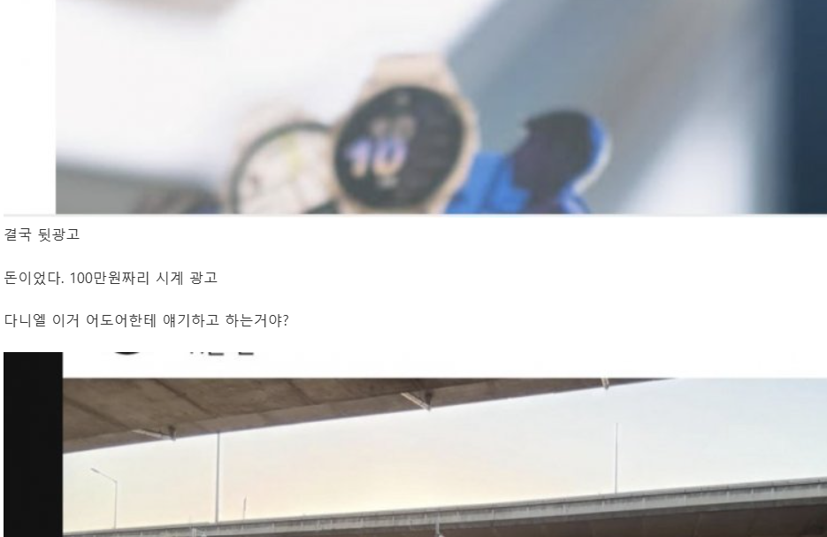해당 네티즌은 "결국 뒷광고. 돈이었다. 100만원짜리 시계 광고."라면서 "다니엘, 이거 어도어한테 얘기하고 하는 거야?"라고 뒷광고설을 제기했습니다.