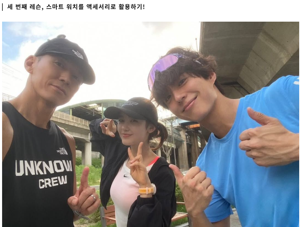 그리고 세 사람의 팔목에 찬 가민 스마트워치 사진이 등장합니다.