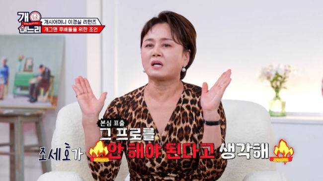 이에 이경실은 "농담으로 한 소리"라며 "그런식으로 자기만의 성격을 갖고 해야한다. 사람들이 뭐라하는 거에 대해 물론 참고는 해야겠지만 그게 법은 아니다"라고 강조했습니다.