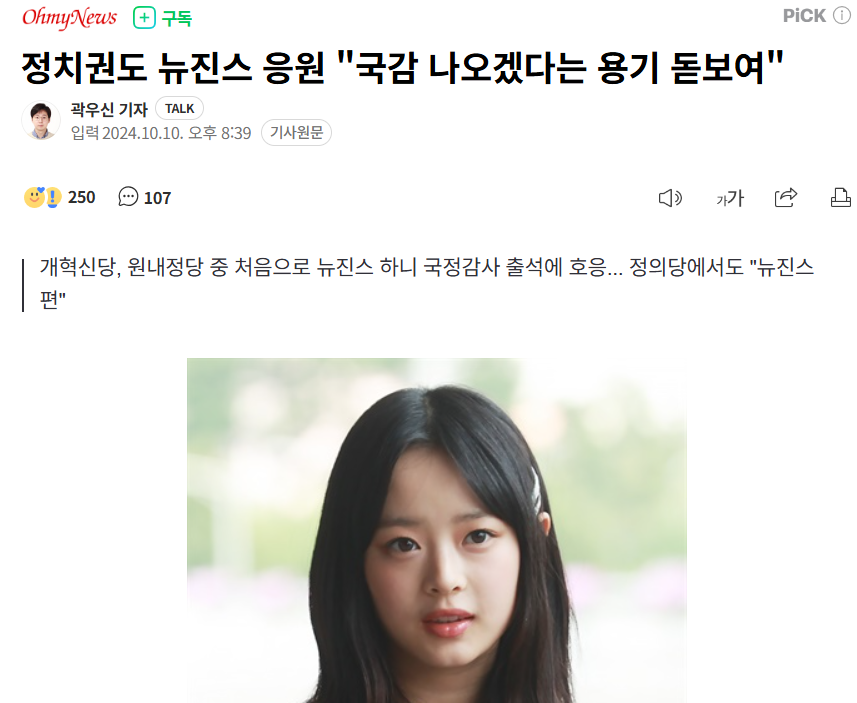 작년 9월 녹색정의당 전 대표 신분이었던 김준우는 당시 뉴진스를 응원한다는 뜻을 밝힌 바 있기도 합니다.