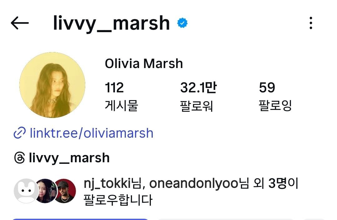 올리비아 마쉬의 계정 이름은 리비 마쉬(livvy marsh)라고 명기돼 있습니다.