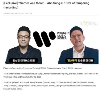 또한 안성일은 “가처분 인용 후에는 중재해야 하는데 1집, 2집 판권을 넘기는 조건으로 너한테 50억에서 100억 정도를 준다. 그런데 외부에는 피프티피프티 멤버들의 미래를 위해 놔주기로 결정했다고 밝히는 것”이라며 “워너가 이런 입장들을 다 고려하며 제안했다”고 말했습니다.